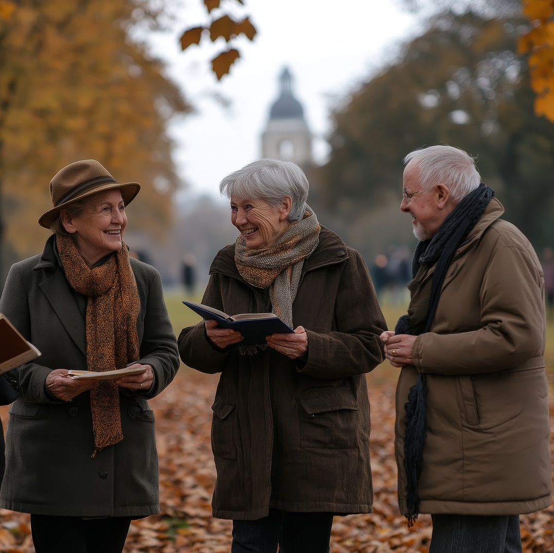 Von November bis Januar wird es dann am Kamin im Haus Scharpenberg in etwas kleinerer Runde gemütlich bei Getränken und Gebäck oder Knabbereien, Gesprächen, Geschichten und Gedichten.