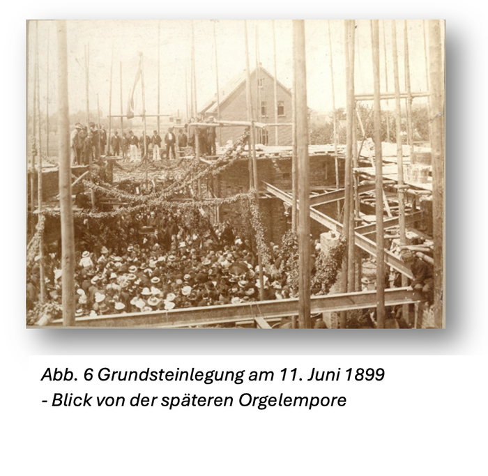 „Superintendent Schürmann ließ die Herrn Ortspfarrer und Kirchmeister Heinrich Roßkothen den genialen Erbauer der Kirche, Architekt Heidsiek, feiern. An das Essen schloss sich um 4 Uhr ein gemeinschaftliches Kaffeetrinken, an dem wohl 600 Personen teilnahmen.“