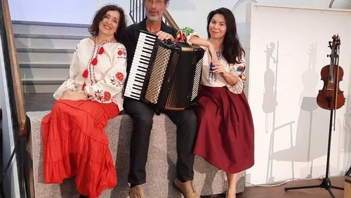 Vor dem zweiten Weltkrieg lebten über Jahrhunderte Millionen von Jüd*innen in der Ukraine, wie auch in den benachbarten Ländern Polen, Russland und im Baltikum. Seit jeher haben sich die typisch jüdische Musik und die ukrainische Volksmusik gegenseitig beeinflusst. Diese alten Kulturen bringt das Trio in neuer Form auf die Bühne und spielt sowohl traditionelle ukrainische Lieder als auch alte und neuere jiddische Lieder und Klezmermelodien.